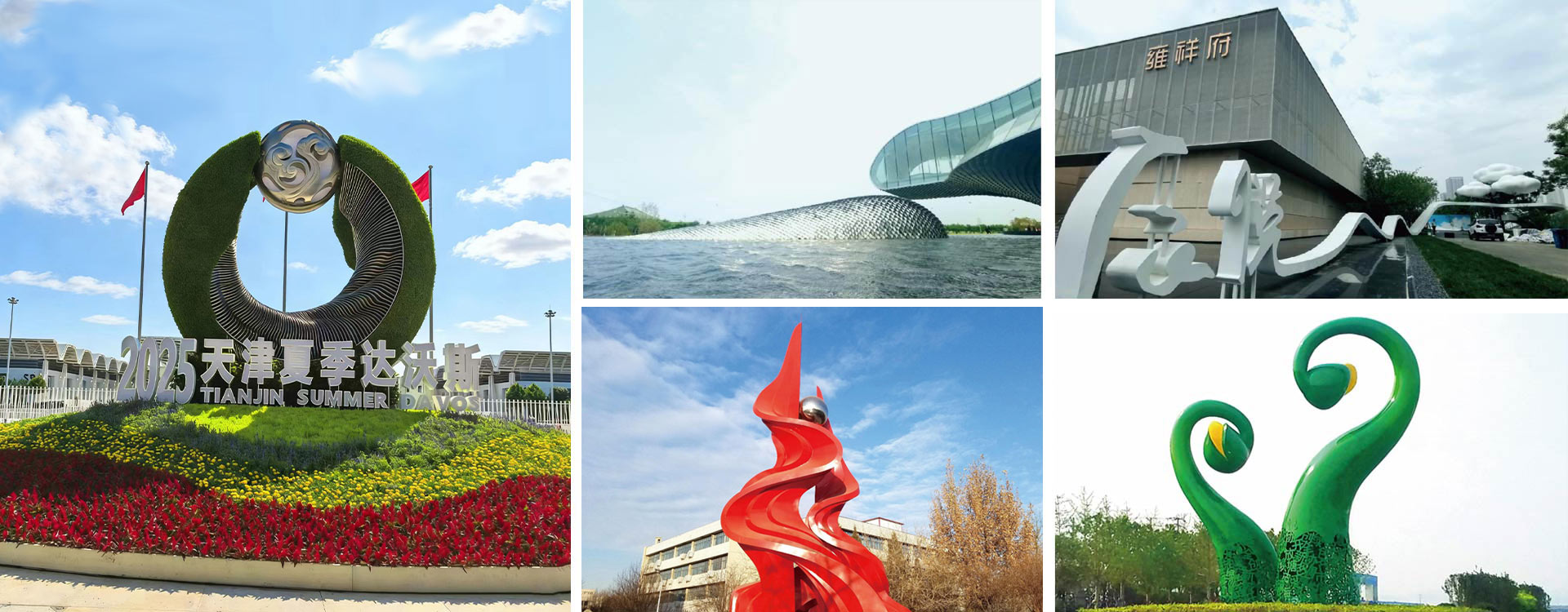 2025-07-03天津善大雕塑公司设计施工作品2025夏季达沃斯主题雕塑艺术装置在天津国展中心主会场建成。核心亮点:一. 东方智慧的当代转译: 灵感源自红山玉龙、玉璧祥云纹等东方礼器,将其精髓解构重塑。 打造“凌空悬浮的浑源玉佩”意象,以现代304不锈钢骨架承载千年美学。 巧妙融合海河浪潮动态线条,赋予静态雕塑流动生命力。二. 生态理念的立体宣言: “钢铁为骨,绿意作魂”:雕塑不仅是艺术品,更是...